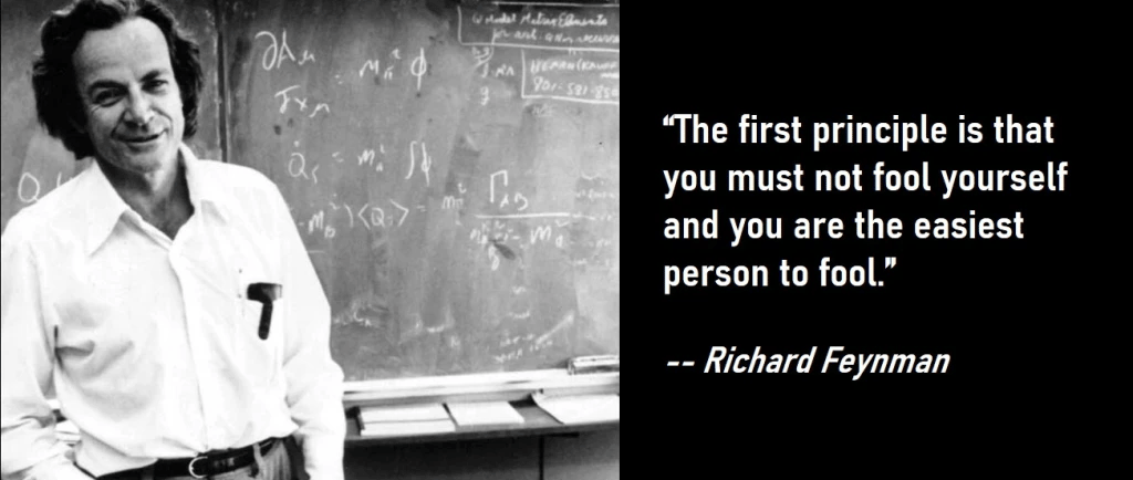 "The first principle is that you must not fool yourself and you are the easiest person to fool." Richard P. Feynman